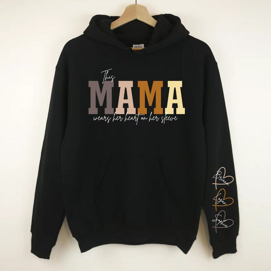 Personalized MAMA Wears Her Heart On Her Sleeve Sweatshirt