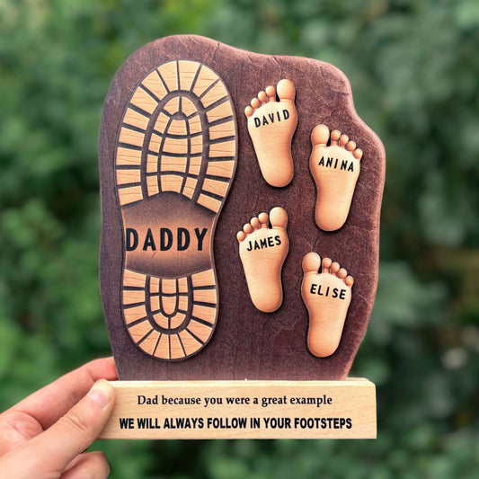 I'm Following in Your Footsteps – Personalized Wooden Plaque for Dad/Grandpa